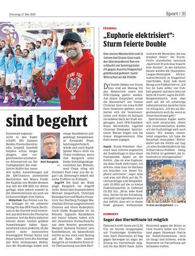 Den ersten Meistertitel seit 13 Jahren hat Sturm Graz nach der überstandenen Nervenschlacht am Sonntag beim 2:0 gegen Austria Klagenfurt gebührend gefeiert. Samt Wünschen an die Politik.