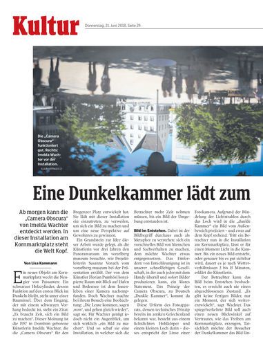 Ab morgen kann die „Camera Obscura“ von Imelda Wachter entdeckt werden. In dieser Installation am Kornmarktplatz steht die Welt Kopf.