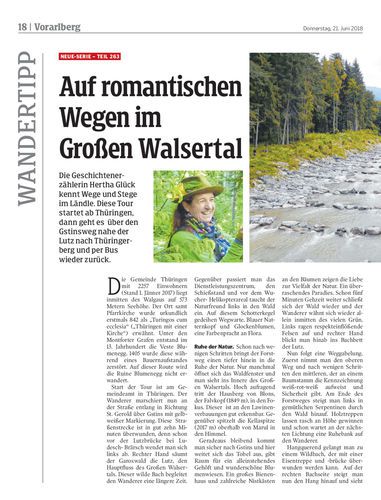 Die Geschichtenerzählerin Hertha Glück kennt Wege und Stege im Ländle. Diese Tour startet ab Thüringen, dann geht es über den Gstinsweg nahe der Lutz nach Thüringerberg und per Bus