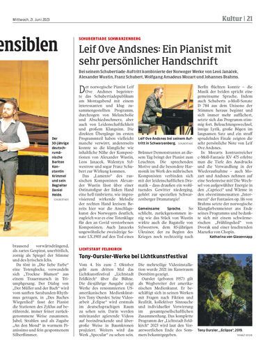 Bei seinem Schubertiade-Auftritt kombinierte der Norweger Werke von Leoš Janáček, Alexander Wustin, Franz Schubert, Wolfgang Amadeus Mozart und Johannes Brahms.