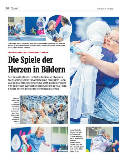 Seit Samstag finden in Berlin die Special Olympics Weltsommerspiele für Athleten mit mentalem Handicap und Mehrfachbehinderung statt. Ein Bilderbogen von den ersten Wettkampftagen, die im Boccia-Teambewerb bereits Bronze für Vorarlberg brachten.