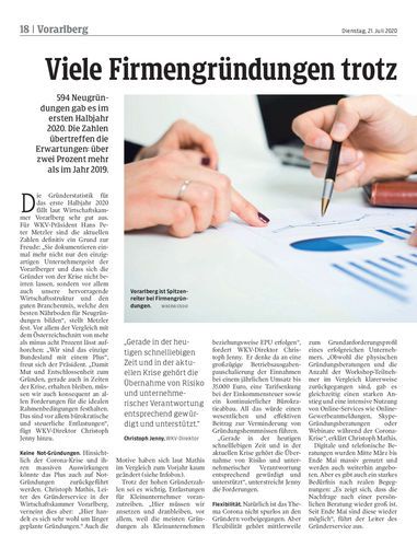 594 Neugründungen gab es im ersten Halbjahr 2020. Die Zahlen übertreffen die Erwartungen: über zwei Prozent mehr als im Jahr 2019.