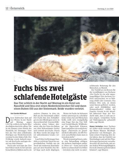 Das Tier schlich in der Nacht auf Montag in ein Hotel am Nassfeld und biss erst einen Niederösterreicher (51) und dann einen Buben (10) aus der Steiermark. Beide wurden verletzt.