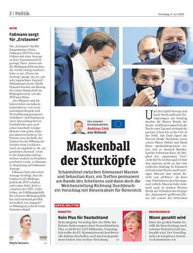 Österreichs Kanzler und Frankreichs Präsident geraten beim EU-Gipfel aneinander. Kurz handelt für Österreich Rabatt von vier Milliarden Euro bis 2027 aus.