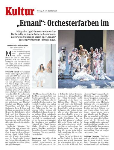 Mit großartige Stimmen und musikalischem Glanz feierte Lotte de Beers Inszenierung von Giuseppe Verdis Oper „Ernani“ gestern Premiere im Festspielhaus.