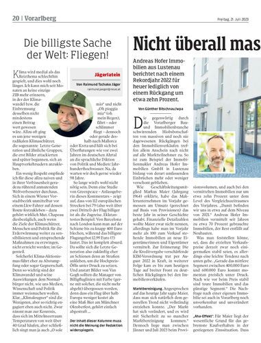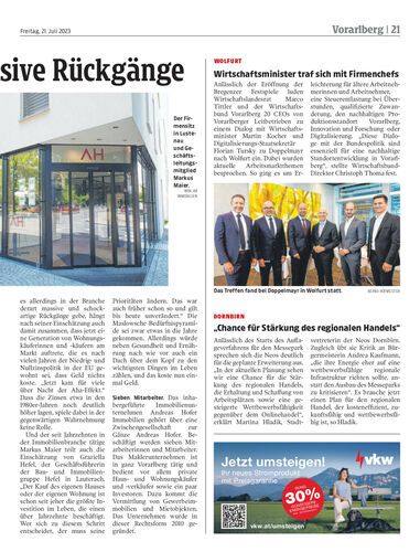 Andreas Hofer Immobilien aus Lustenau berichtet nach einem Rekordjahr 2022 für heuer lediglich von einem Rückgang um etwa zehn Prozent.