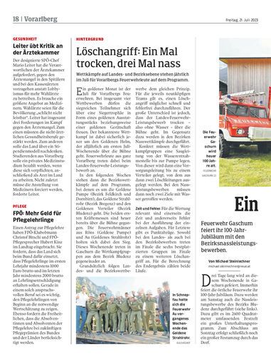 Wettkämpfe auf Landes- und Bezirksebene stehen jährlich im Juli für Vorarlbergs Feuerwehrleute auf dem Programm.