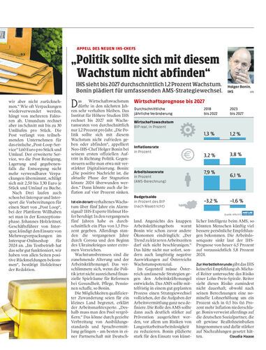 IHS sieht bis 2027 durchschnittlich 1,2 Prozent Wachstum. Bonin plädiert für umfassenden AMS-Strategiewechsel.