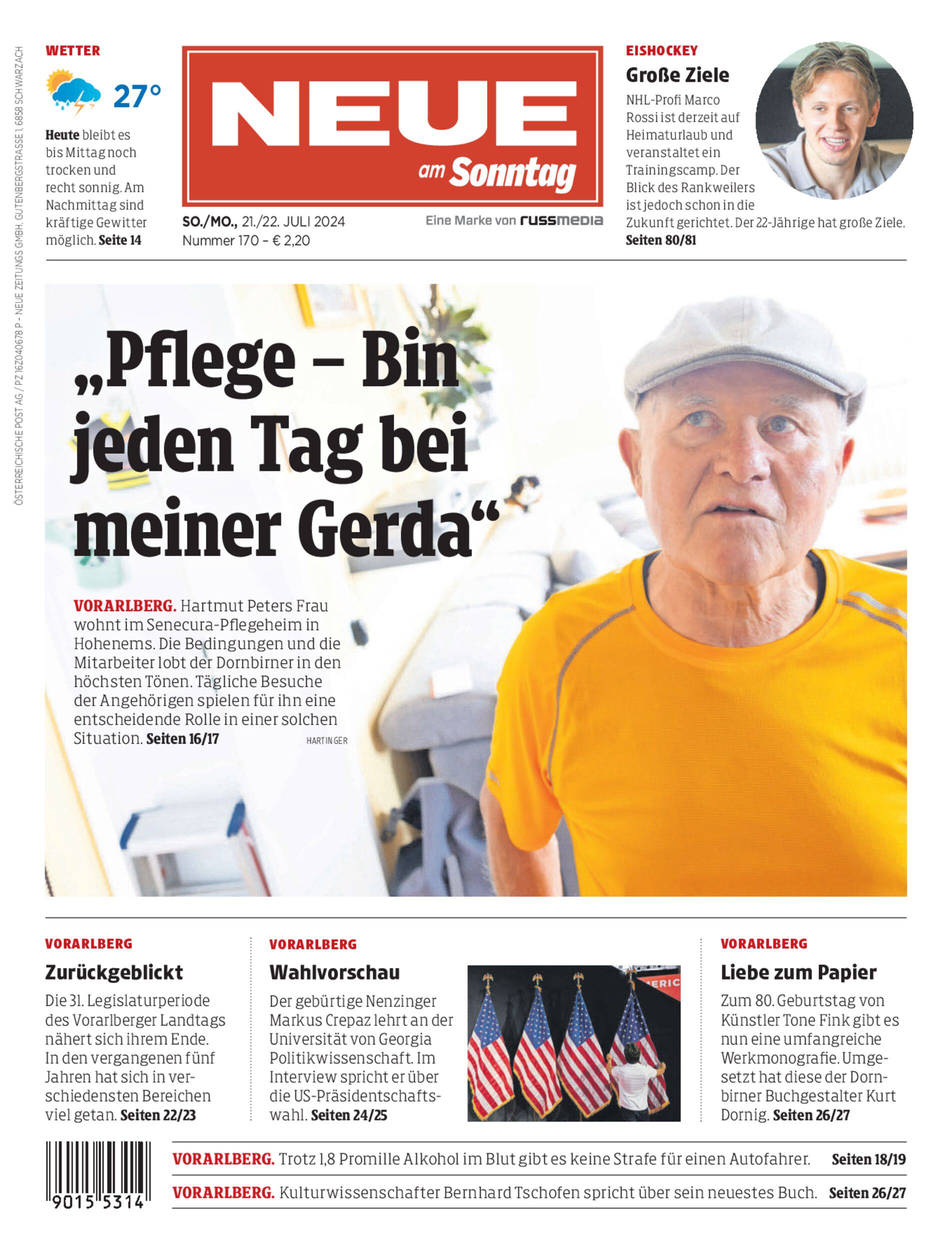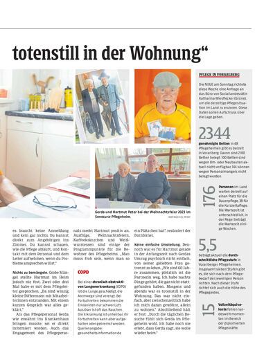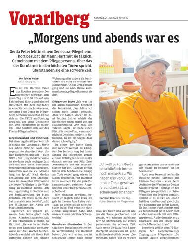 Gerda Peter lebt in einem Senecura-Pflegeheim. Dort besucht ihr Mann Hartmut sie täglich. Gemeinsam mit dem Pflegepersonal, über das der Dornbirner in den höchsten Tönen spricht, überstanden sie eine schwere Zeit.