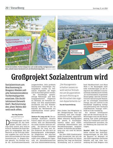 Sozialzentrum am Brachsenweg in Bregenz-Rieden soll alte Seniorenresidenz Tschermakgarten ersetzen. Ein Architektenwettbewerb läuft. Nachnutzung des alten Heims derweil noch offen.