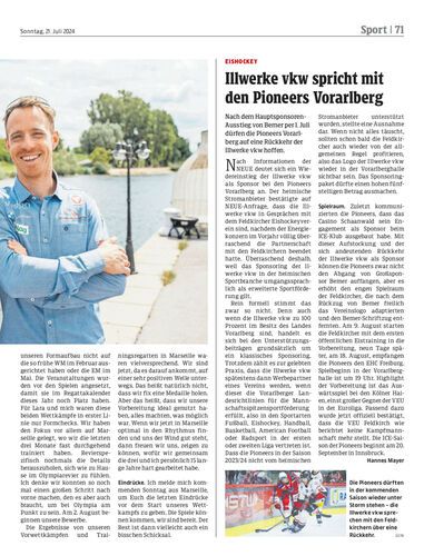 Nach dem Hauptsponsoren-Ausstieg von Bemer per 1. Juli dürfen die Pioneers Vorarlberg auf eine Rückkehr der Illwerke vkw hoffen.