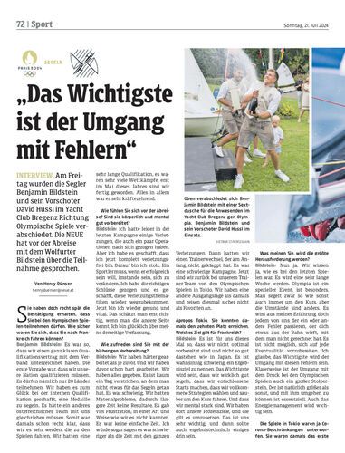 Interview. Am Freitag wurden die Segler Benjamin Bildstein und sein Vorschoter David Hussl im Yacht Club Bregenz Richtung Olympische Spiele verabschiedet. Die NEUE hat vor der Abreise mit dem Wolfurter Bildstein über die Teilnahme gesprochen.