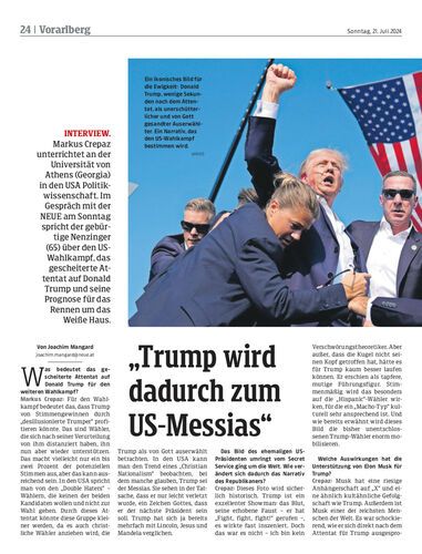 Markus Crepaz unterrichtet an der Universität von Athens (Georgia) in den USA Politikwissenschaft. Im Gespräch mit der NEUE am Sonntag spricht der gebürtige Nenzinger (65) über den US-Wahlkampf, das gescheiterte Attentat auf Donald Trump und seine Prognose für das Rennen um das Weiße Haus.