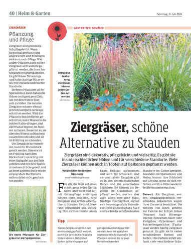Ziergräser sind dekorativ, pflegeleicht und vielseitig. Es gibt sie in unterschiedlichen Höhen und für verschiedene Standorte. Viele Ziergräser können auch in Töpfen auf Balkonen gepflanzt werden.
