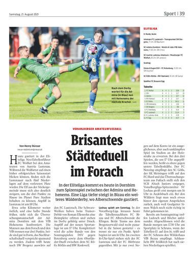 In der Eliteliga kommt es heute in Dornbirn zum Spizenspiel zwischen der Admira und Hohenems. Eine Liga tiefer steigt in Bizau ein weiteres Wälderderby, wo Alberschwende gastiert.