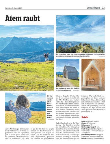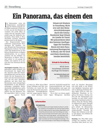Urlaub mit Kindern in Vorarlberg. Nicht erst seit den Reiseeinschränkungen durch die Corona-Pandemie liegt Urlaub im Ländle im Trend. Wir präsentieren über den Sommer Ausflugstipps für Familien. Heute mit dem Panoramaweg Baumgarten in Bezau, der für Groß und Klein Atemberaubendes bereithält.