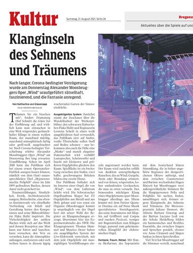 Nach langer, Corona-bedingter Verzögerung wurde am Donnerstag Alexander Moosbruggers Oper „Wind“ uraufgeführt: rätselhaft, faszinierend, und die Fantasie anregend.