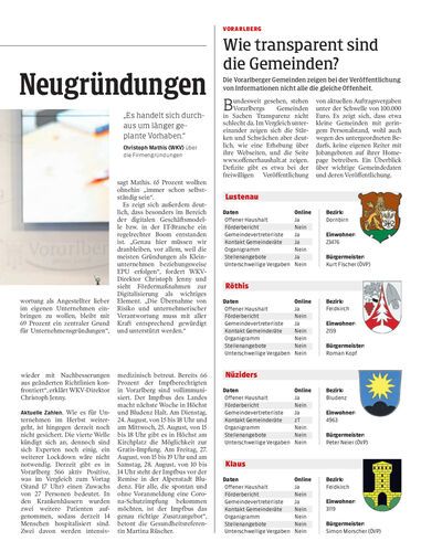 Die Vorarlberger Gemeinden zeigen bei der Veröffentlichung von Informationen nicht alle die gleiche Offenheit.