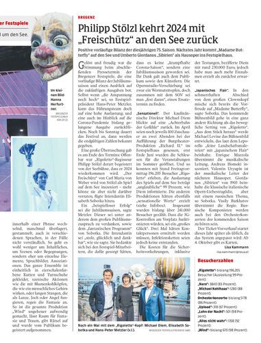 Positive vorläufige Bilanz der diesjährigen 75. Saison. Nächstes Jahr kommt „Madame Butterfly“ auf den See und Umberto Giordanos „Sibirien“ als Hausoper ins Festspielhaus.