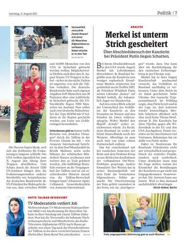 Über Abschiedsbesuch der Kanzlerin bei Präsident Putin liegen Schatten.