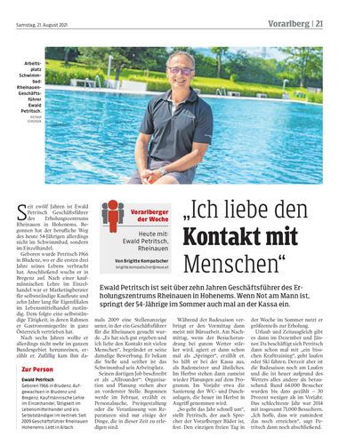 Ewald Petritsch ist seit über zehn Jahren Geschäftsführer des Erholungszentrums Rheinauen in Hohenems. Wenn Not am Mann ist, springt der 54-Jährige im Sommer auch mal an der Kassa ein.
