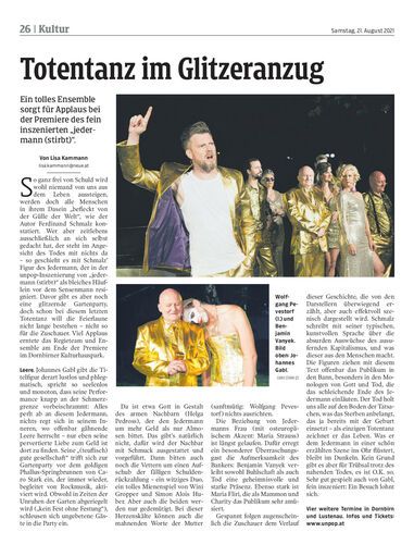Ein tolles Ensemble sorgt für Applaus bei der Premiere des fein inszenierten „jedermann (stirbt)“.