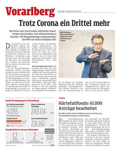 Der Krise zum Trotz haben zahlreiche Vorarlberger entschieden, sich selbstständig zu machen. 756 Neugründungen dokumentiert die WKV im ersten Halbjahr 2021.