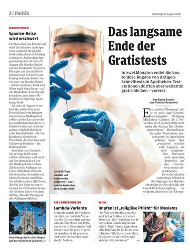 In zwei Monaten endet die kostenlose Abgabe von Antigen-Schnelltests in Apotheken. Teststationen dürften aber weiterhin gratis bleiben – vorerst.
