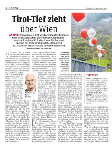 Analyse. Vor allem die ÖVP wird am Sonntag betonen, dass Landtagswahlen eigenen Gesetzen folgen – und die Bundespolitik den ihren. Ein Debakel in Tirol hat aber Strahlkraft bis Wien und zur nächsten Entscheidung in Niederösterreich. Von Peter Plaikner aus Innsbruck