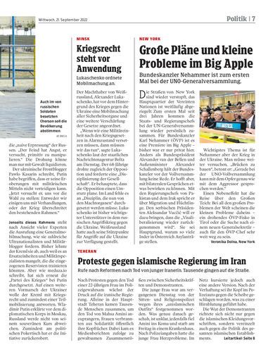 Bundeskanzler Nehammer ist zum ersten Mal bei der UNO-Generalversammlung.