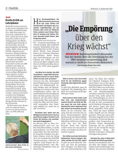 INTERVIEW. Bundespräsident Alexander Van der Bellen über die Stimmung bei der UNO-Generalversammlung und warum er nicht im Fernsehen diskutiert. Von Veronika Dolna/ New York