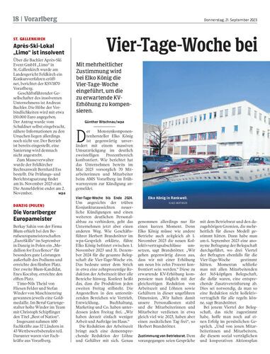 Mit mehrheitlicher Zustimmung wird bei Elko König die Vier-Tage-Woche eingeführt, um die zu erwartende KV-Erhöhung zu kompensieren.