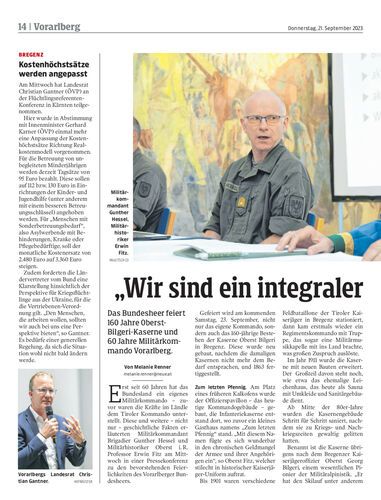 Das Bundesheer feiert 160 Jahre Oberst-Bilgeri-Kaserne und 60 Jahre Militärkommando Vorarlberg.