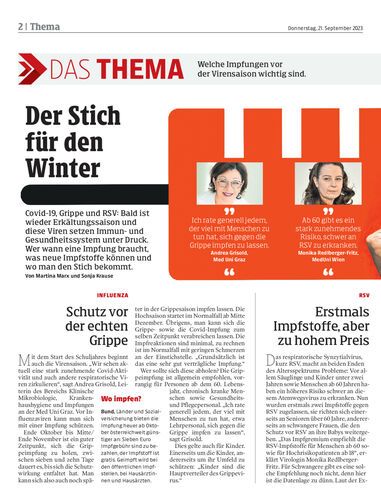 Covid-19, Grippe und RSV: Bald ist wieder Erkältungssaison und diese Viren setzen Immun- und Gesundheitssystem unter Druck. Wer wann eine Impfung braucht, was neue Impfstoffe können und wo man den Stich bekommt. Von Martina Marx und Sonja Krause