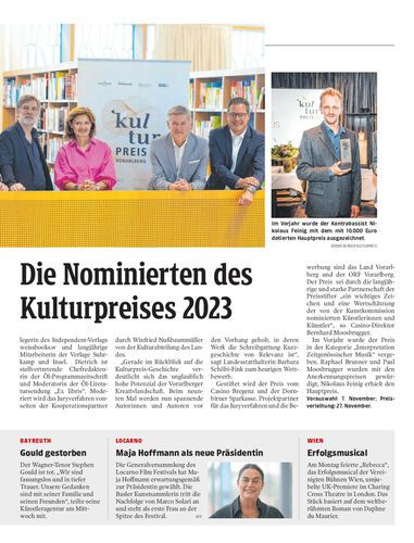 Der Vorarlberger Kulturpreis 2023 wird in der Kategorie „Kurzgeschichte“ vergeben. Seit gestern sind die Nominierten bekannt.