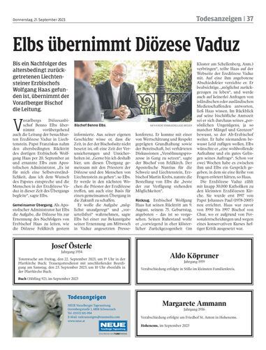 Elbs übernimmt Diözese Vaduz