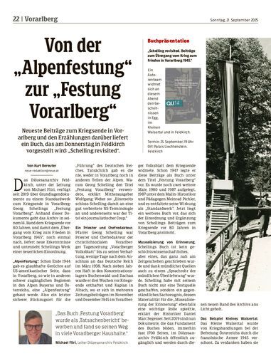 Neueste Beiträge zum Kriegsende in Vorarlberg und den Erzählungen darüber liefert ein Buch, das am Donnerstag in Feldkirch vorgestellt wird: „Schelling revisited“.