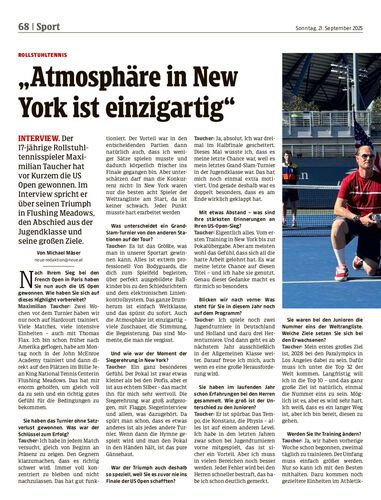Interview. Der 17-jährige Rollstuhltennisspieler Maximilian Taucher hat vor Kurzem die US Open gewonnen. Im Interview spricht er über seinen Triumph in Flushing Meadows, den Abschied aus der Jugendklasse und seine großen Ziele.