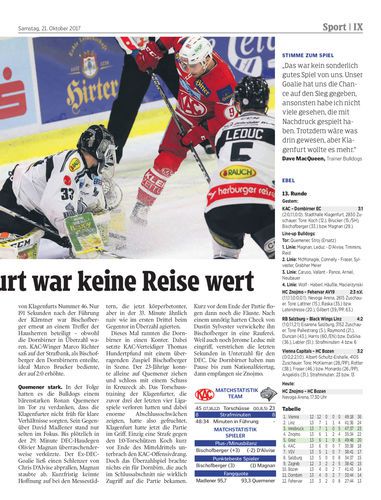 Dornbirn findet in Klagenfurt nie ins Spiel und verliert beim KAC mit 1:3. Ein Shorthander gegen den DEC bringt die Vorentscheidung.