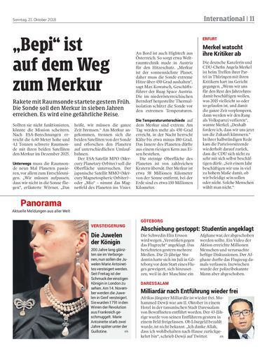 Rakete mit Raumsonde startete gestern Früh. Die Sonde soll den Merkur in sieben Jahren erreichen. Es wird eine gefährliche Reise.