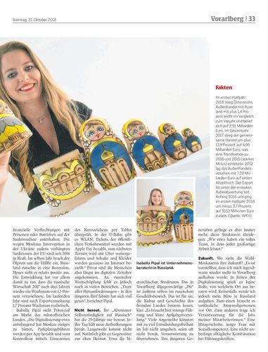 Isabella Pipal ist jung und erfolgreich. Gemeinsam mit einer Wirtschaftswissenschaftlerin führt die 29-jährige Dornbirnerin seit fast fünf Jahren eine Rechts- und Unternehmensberatung in Russland. Ansässig in Moskau sorgt sie mit etwa zehn Mitarbeiterinnen für Kontaktanbahnungen zwischen Wirtschaftstreibenden des flächenmäßig größten Staates der Erde und ihrer Heimat Österreich.