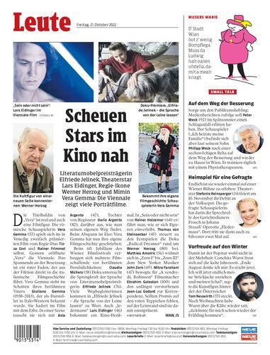 Literaturnobelpreisträgerin Elfriede Jelinek, Theaterstar Lars Eidinger, Regie-Ikone Werner Herzog und Mimin Vera Gemma: Die Viennale zeigt viele Porträtfilme.