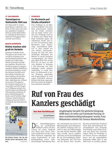 Angeklagter bezahlt für gütliche Einigung 4000 Euro. Er teilte auf Facebook Posting, in dem wahrheitswidrig behauptet wurde, Frau Nehammer arbeite für Corona-Maskenfirma.