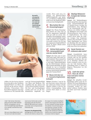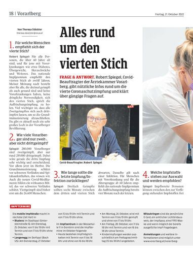Frage & Antwort. Robert Spiegel, Covid-Beauftragter der Ärztekammer Vorarlberg, gibt nützliche Infos rund um die vierte Coronaschutzimpfung und klärt über gängige Fragen auf.