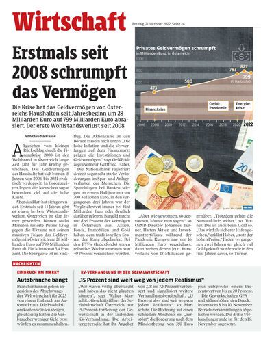 Die Krise hat das Geldvermögen von Österreichs Haushalten seit Jahresbeginn um 28 Milliarden Euro auf 799 Milliarden Euro abrasiert. Der erste Wohlstandsverlust seit 2008.