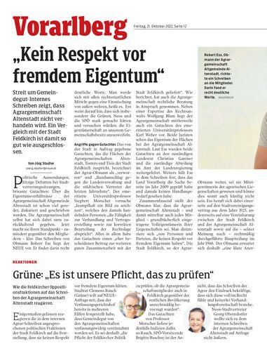 Wie die Feldkircher Oppositionsfraktionen auf das Schreiben der Agrargemeinschaft Altenstadt reagieren.