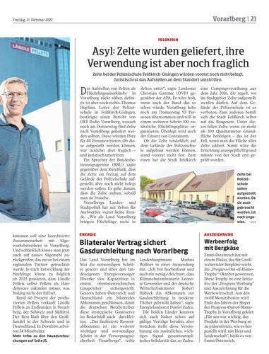 Zelte bei der Polizeischule Feldkirch-Gisingen würden vorerst noch nicht belegt.