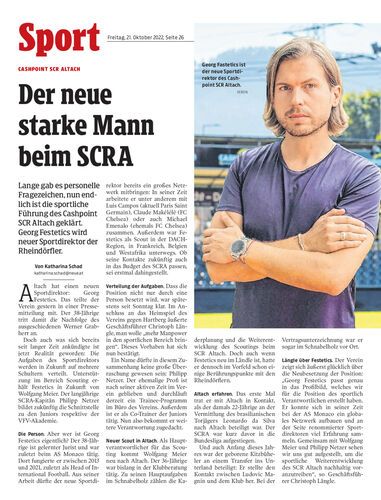 Lange gab es personelle Fragezeichen, nun endlich ist die sportliche Führung des Cashpoint SCR Altach geklärt. Georg Festetics wird neuer Sportdirektor der Rheindörfler.