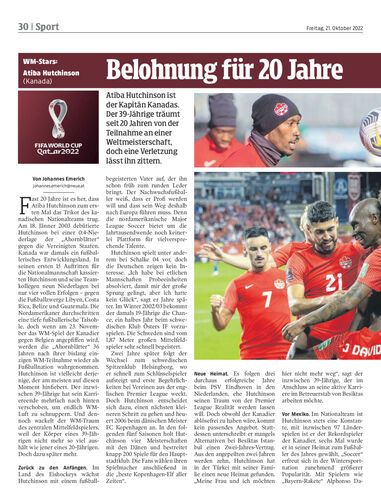 Atiba Hutchinson ist der Kapitän Kanadas. Der 39-Jährige träumt seit 20 Jahren von der Teilnahme an einer Weltmeisterschaft, doch eine Verletzung lässt ihn zittern.