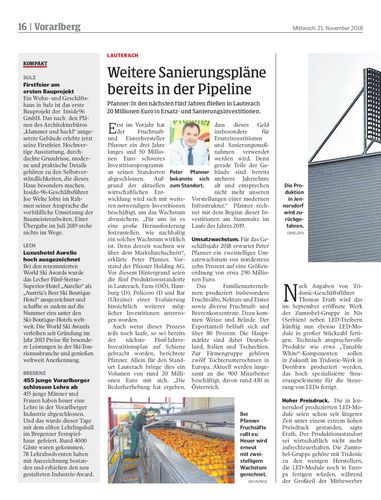 Pfanner: In den nächsten fünf Jahren fließen in Lauterach 20 Millionen Euro in Ersatz- und Sanierungsinvestitionen.